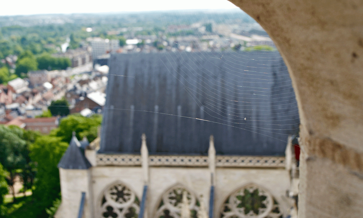 Second-degree architectural detail: a spider redefining the association of its species with the Gothic, beyond the base Halloween-ish imagery. Here is the work of a true and wonderful builder; his artistry gave life to a new rose window.
